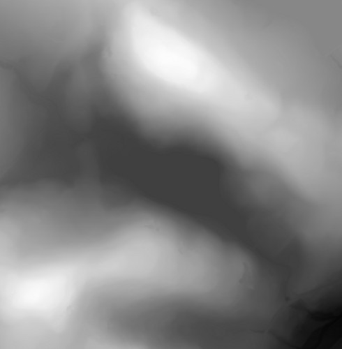 Once you’ve got the selection looking correct, you need to export a grayscale picture that represents only the height data. The picture you see now is a false-color shading intended to represent a sunlight source, and using it as a surface will result in a very skewed model with lots of drop-outs and every sunward surface registering as higher than the dark sides.